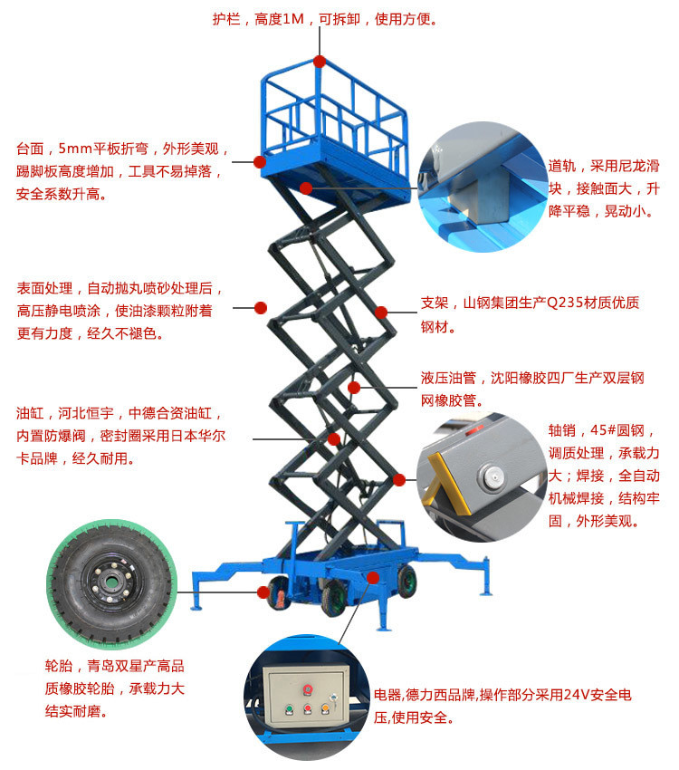 輔助自行式升降平臺具有電瓶助力移動功能,移動靈活方便,單人即可實現(xiàn)移動操作,令高空作業(yè)更方便快捷,是現(xiàn)代企業(yè)高效安全生產(chǎn)之理想高空作業(yè)設(shè)備。