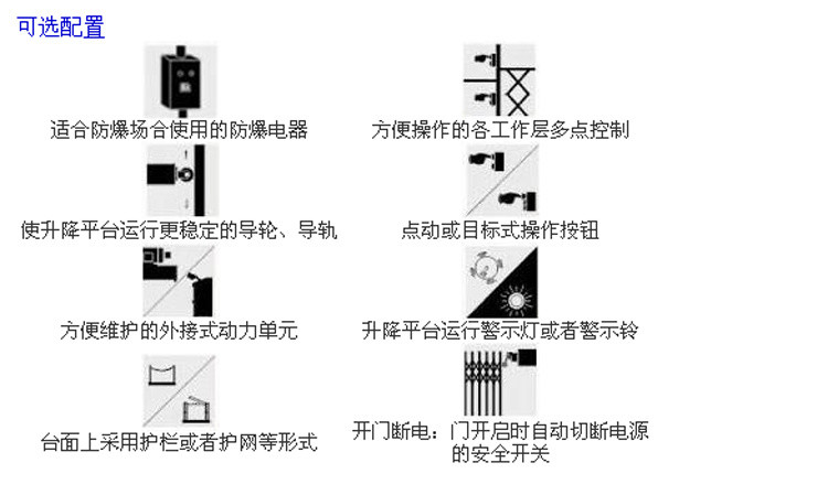 由于受建筑物或工作擱層的高度,所載物體的大小、重量及其它使用要求的影響,其型號有很多不確定因素??筛鶕?jù)實際使用環(huán)境和操作要求,對升降臺的升高、承載量、平臺面積等進行設計,以便取得理想的使用效果。
