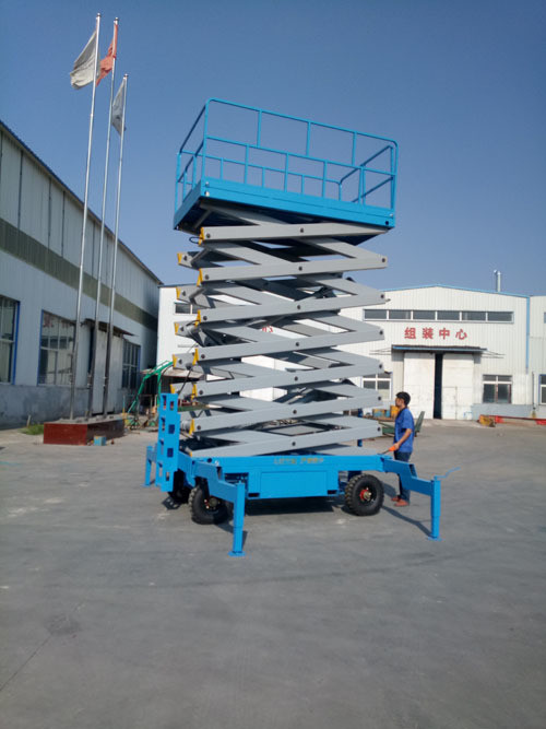 移動式升降機(jī)是用途廣泛的高空作業(yè)專用設(shè)備。它的剪叉機(jī)械結(jié)構(gòu),使升降臺起升有較高的穩(wěn)定性,寬大的作業(yè)平臺和較高的承載能力,使高空作業(yè)范圍更大、并適合多人同時作業(yè)。升降動力分為220V或380V電源,柴油機(jī),或電瓶動力源,特殊環(huán)境也可采用防爆泵站及防爆電器。升高4——22米,載重0.3—3噸。采用意大利和國產(chǎn)液壓泵站,臺面使用防滑絕緣扣板,具有防滑,絕緣、安全,請放心使用。它使高空作業(yè)效率更高,安全更保障。