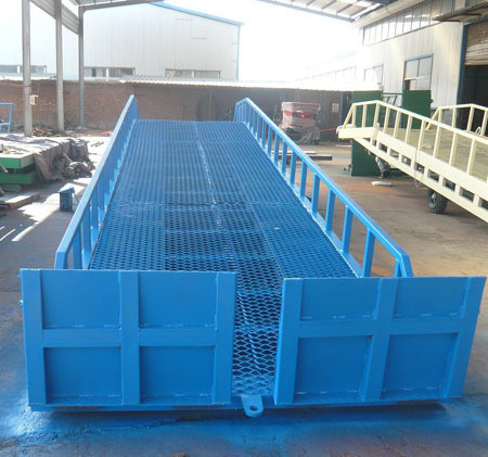 移動式登車橋是與叉車配合使用的貨物裝卸專用輔助設備,有了它叉車能直接從地面駛入汽車車廂內部進行批量裝卸作業(yè)。產(chǎn)品采用人工液壓動力,不需接動力電源。只需單人操作,即可實現(xiàn)貨物的安全快速裝卸。它可使企業(yè)減少大量勞動力,成倍提高裝卸作業(yè)效率,加快貨物流通速度,獲取更大經(jīng)濟效益。